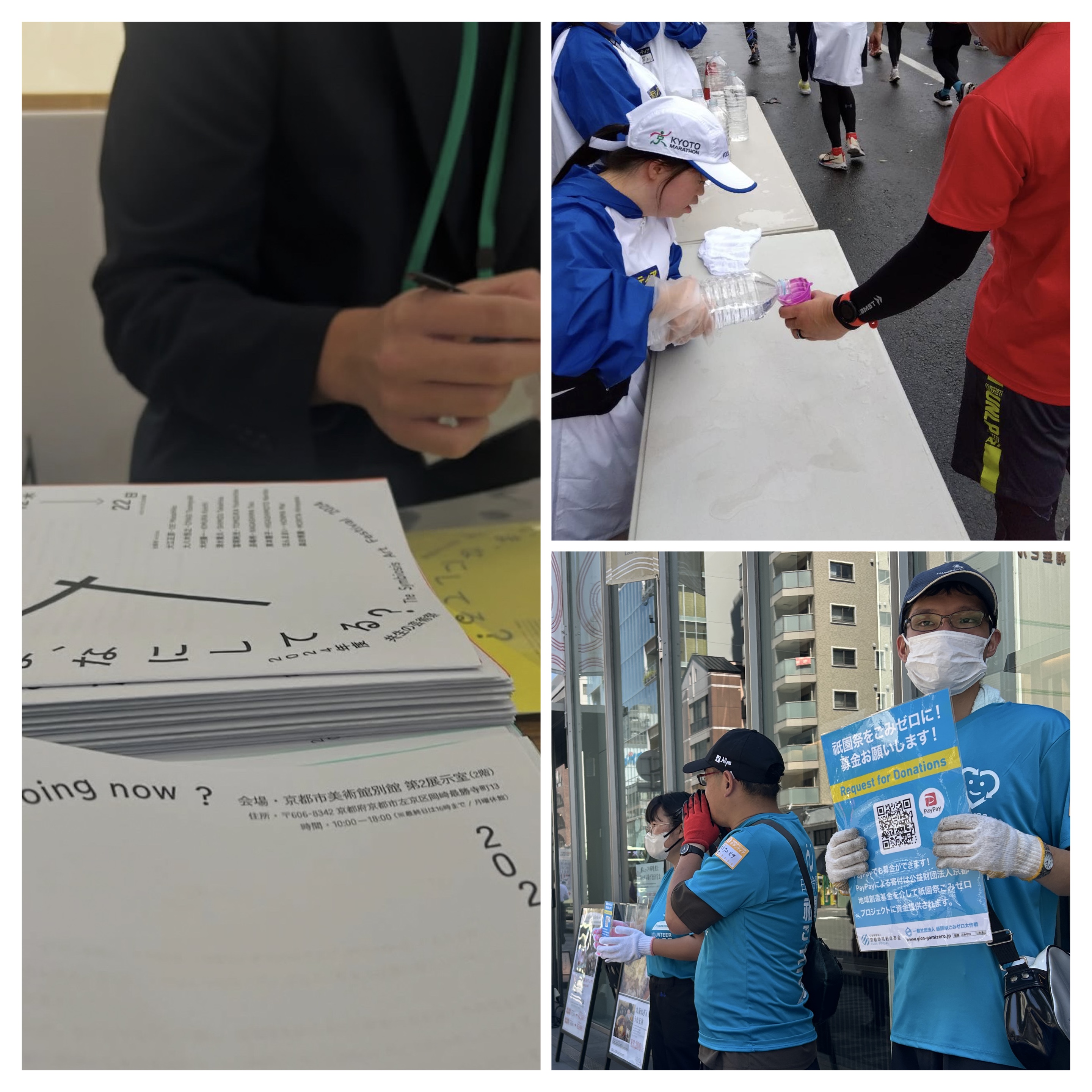 利用者の皆さまと一緒に、スポーツ会場の設営や来場者案内、アートフェスティバルの作品展示サポートなど複数のボランティア活動に参加しております。